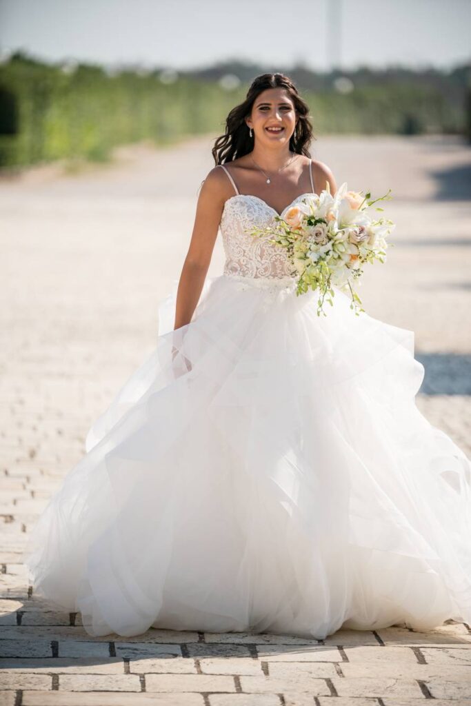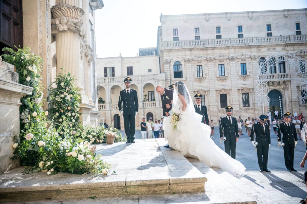 Michele e Noemi, entrambi Carabinieri, rappresentano la forza e la dolcezza, un equilibrio perfetto di amore e rispetto. Hanno scelto di celebrare il loro amore nella maestosa cornice del Duomo di Lecce, un luogo che emana storia e bellezza, perfetto per sigillare un amore così profondo. Il loro “sì” è stato seguito da un ricevimento indimenticabile in una villa da sogno dove ogni dettaglio parlava di eleganza e tradizione.