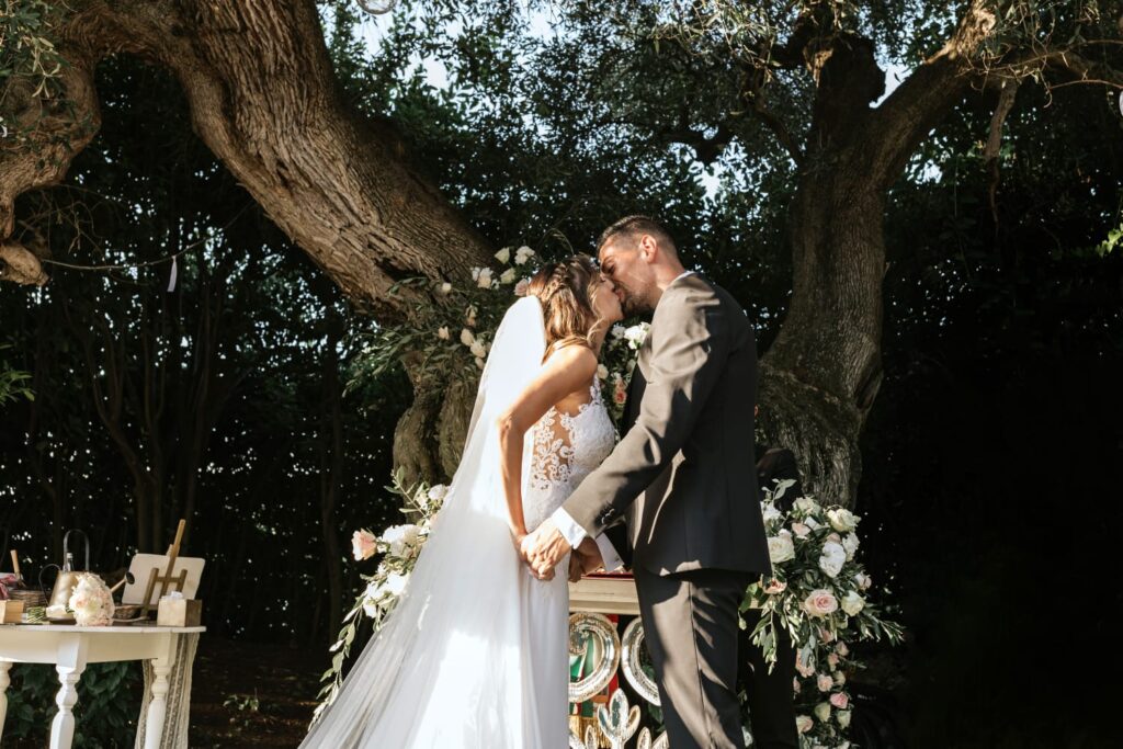 Dopo il fatidico sì, Mary e Francesco si perdono nella bellissima cornice naturale della location, alla ricerca di un attimo solitario. Un momento di quiete, rifugiandosi tra gli ulivi secolari, per celebrare il loro giorno più bello con un magico bacio sospeso tra dolcezza ed eternità.